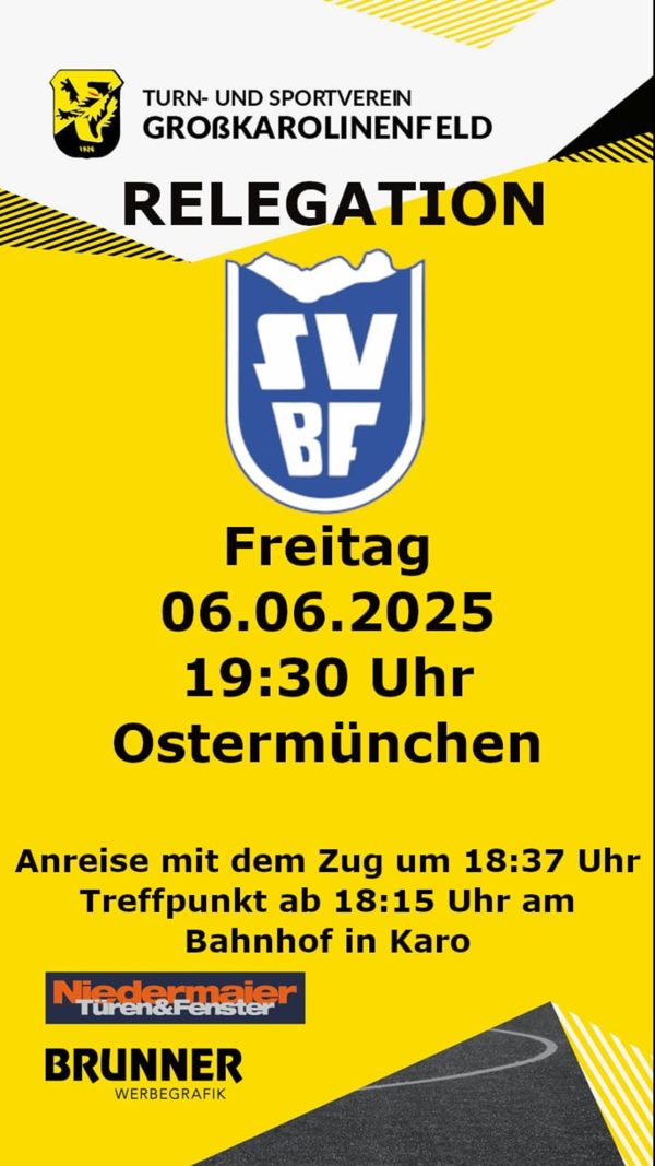 Liebe TuS-Anhänger, am Freitag, 06.06.2025 um 19:30 Uhr findet das Relegationsspiel unserer I. Mannschaft statt. SV Bad Feilnbach vs. TuS Großkarolinenfeld (Flutlichtspiel in Ostermünchen) Wir bekommen die Chance auf Revanche,…
