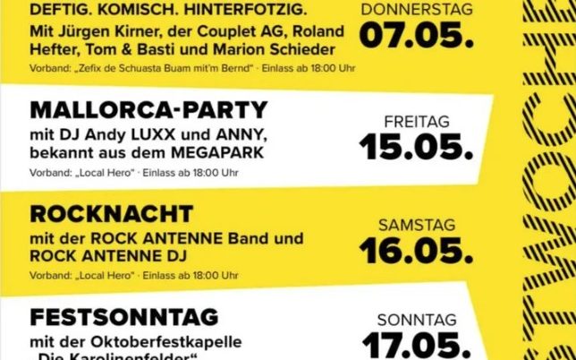 In diesem Jahr findet die 295-Jahrfeier statt. Gefeiert werden 155 Jahre Freiwillige Feuerwehr Großkarolinenfeld, 100 Jahre TuS Großkarolinenfeld und 40 Jahre Theaterverein Großkarolinenfeld. Folgende Aktionen sind in der Festwoche geboten:…